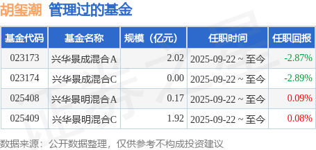 胡玺潮先生:金融硕士,具有基金从业资格。曾任职于招商银行青岛分行,南方基金南京分公司,2021年1月加入兴华基金,先后任权益研究员,权益投资经理。2025年9月22日起担任兴华景成混合型证券投资基金及兴华景明混合型证券投资基金基金经理。