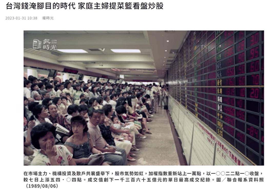 那时台湾15岁以上的人,三分之一都在炒股。单日成交量曾达到2100亿台币,超过纽约和东京证交所的总和。