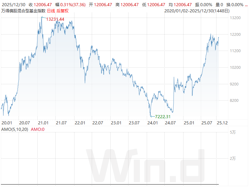 尤其是2020年、2021年持续上涨的主动权益基金,今年迎来显著回暖——不少产品年内净值已突破历史高点。截至年末,万得偏股混合型基金指数距离其2021年峰值的差距已收窄至10%以内。