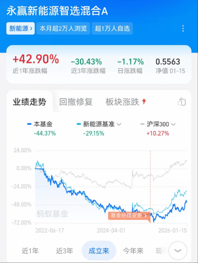 但高收益背后是剧烈的净值波动。Wind数据显示,永赢科技智选自2024年10月成立以来最大回撤达27.0%,而成立超3年的永赢“智选”系列产品单位净值历史最大回撤普遍超40%,如永赢新能源智选A的历史最大回撤更是超过70%。